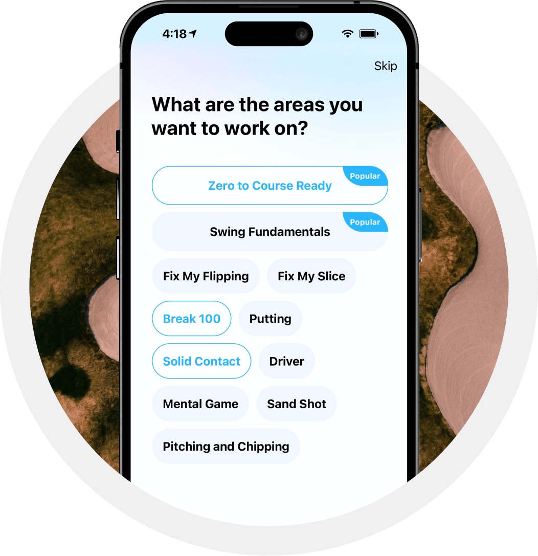 Try For FreeGetting started with 18Birdies Golf School is as simple as downloading our app. Once you sign in, select your current skill level and the areas you want to improve. Our algorithm will suggest a personalized learning plan just for you. Follow step-by-step video drills, practice with purpose, and compare your progress with others in the 18Birdies community. Elevate your game faster with 18Birdies Golf School.